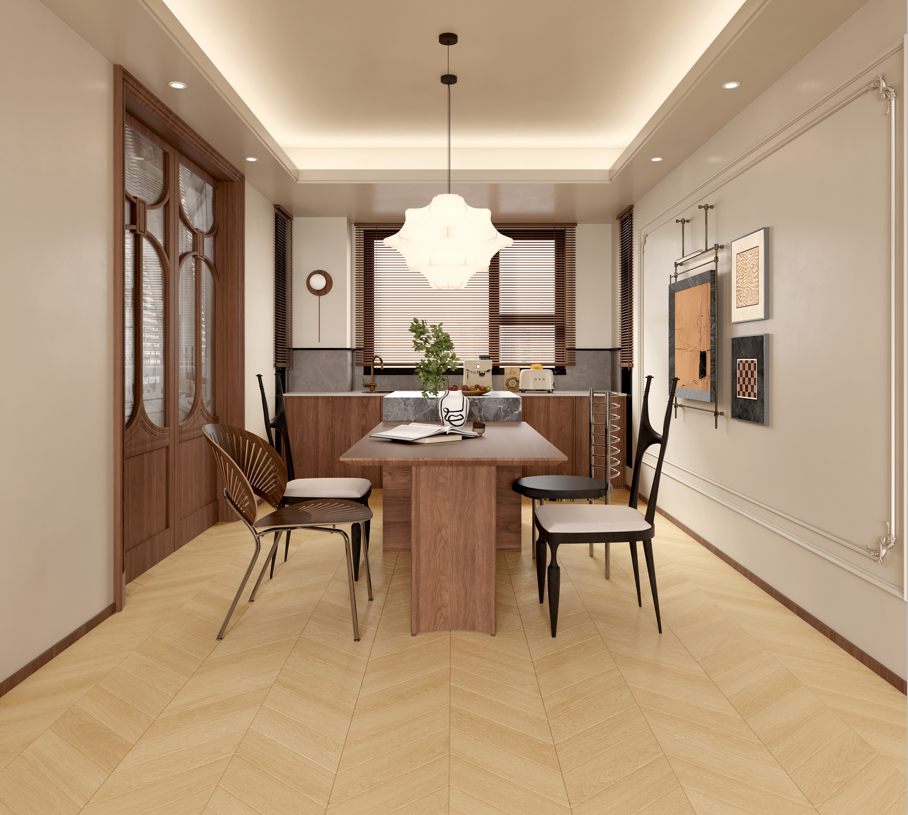復(fù)合四種自然木紋設(shè)計,磚面質(zhì)感層次更豐富,淺淺的燕麥色調(diào),能夠與奶油風(fēng)、中古、現(xiàn)代簡約等熱門家居風(fēng)格相契合,木系的紋理也能夠在不同風(fēng)格家庭中千變?nèi)f化,營造舒適自然、充滿高級感的家居氛圍。