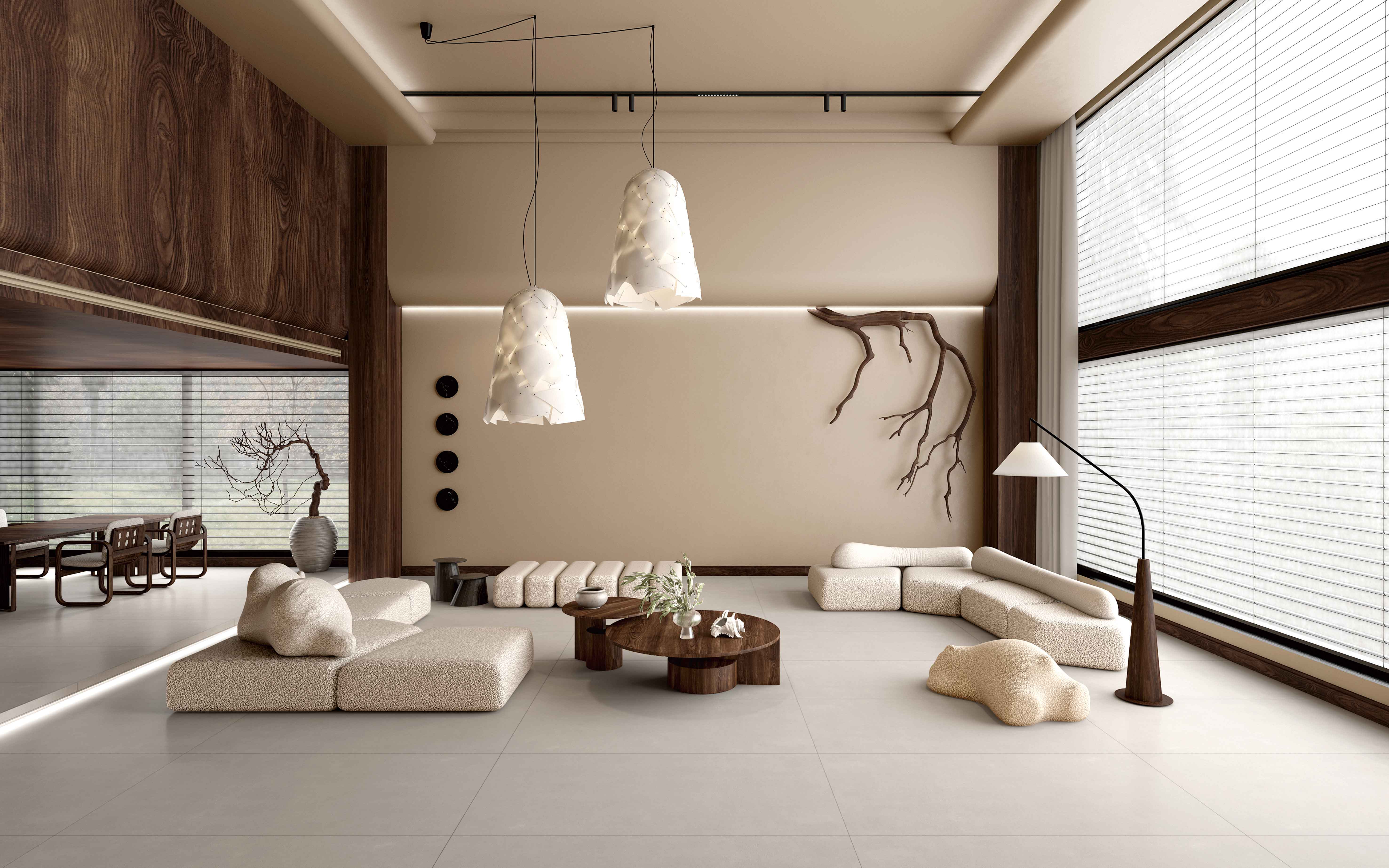 靈感源自化繁為簡(jiǎn)的素色水泥,延續(xù)低飽和度淺卡其色,柔和光澤點(diǎn)點(diǎn)于空間,還一室生活的藝術(shù)氛圍,讓空間有著獨(dú)特的質(zhì)感與寧?kù)o感。